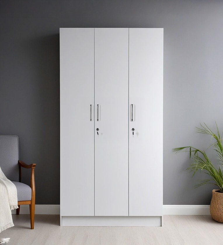 Kibo 3 Door Wardrobe With Adjustable Shelf In Off White Finish