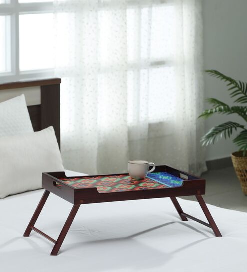 Kilim Print Solid Wood Portable Table in Brown Colour