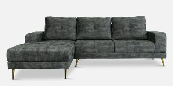 Frame Material - Red Meranti Solid Wood + Heavy Grade Ply Wood (Wherever Applicable) Upholstery material - Premium Suede Velvet Fabric (Lab Tested 100% Polyester, 300 GSM, Martindale Count-40,000+ Rubs) Legs Material - MS ( Mild Steel) Metal Legs with Golden Finish and Nylon Bush Foam - Heavy Grade PU Foam, Foam Density - 32 Density, Medium Softness Suspension System - Elastic Webbing Back Cushions- Attached on Velcro