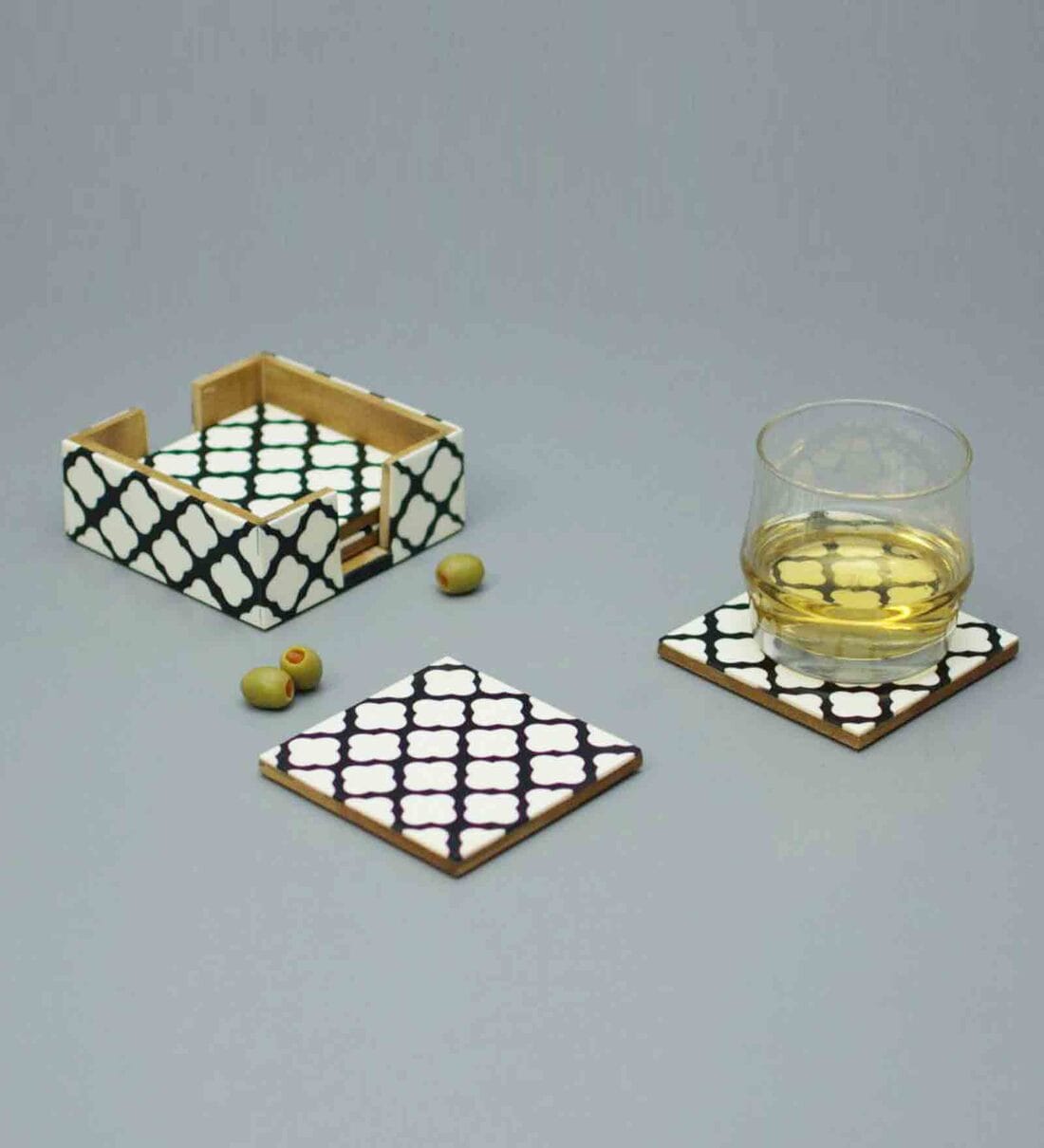 Finch Unbreakable (Set of 4) Engineered Wood Coaster with Holder