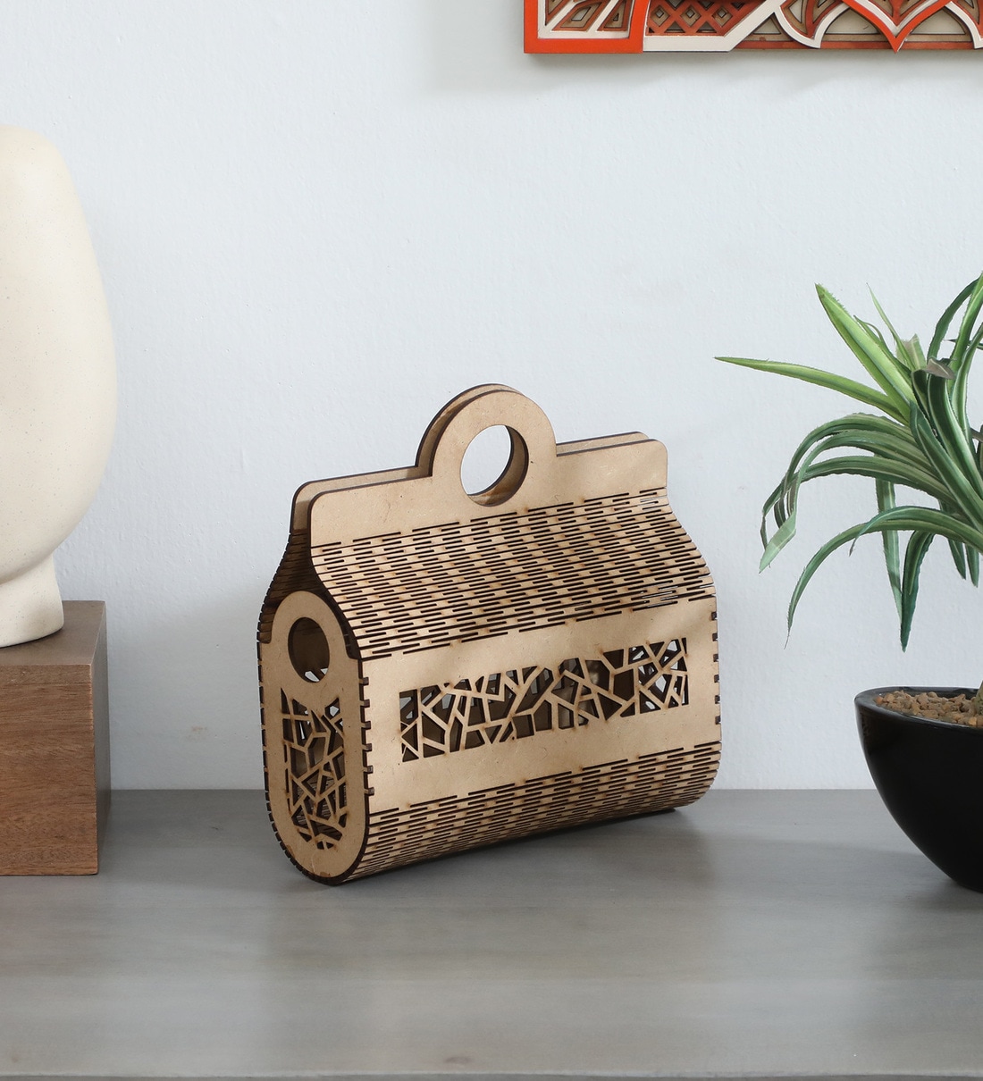 Laser Cut Design Brown Hand Bag Shaped MDF Desk Organizers