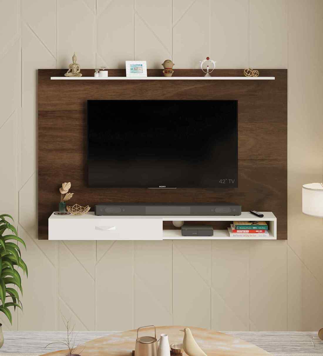 Product Dimensions: Length ( 160 Cm or 63 Inches) Breadth ( 24.3 Cm or 9.5 Inches) Height ( 109.5 Cm or 43.1 Inches) Made of Particle Board (High-grade prelam engineering wood with natural wood grain finish) Color - Brown Maple & White, TV Size - Upto 60 Inches, Multi-Functional Storage, Elegant contemporary design with premium dual-tone finish Assembly Required - DIY (Do-It-Yourself) Installation: This means you'll have to install it yourself or arrange for a carpenter to do it for you. It comes with the necessary hardware, including a detailed installation guide. Warranty: 2-year warranty on manufacturing defects.