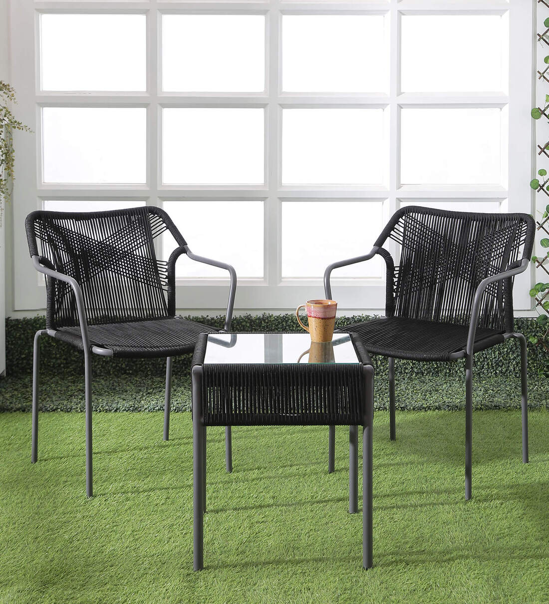 Lanai Steel & Braided Rope Table And Chair Sets In Black Grey Finish
