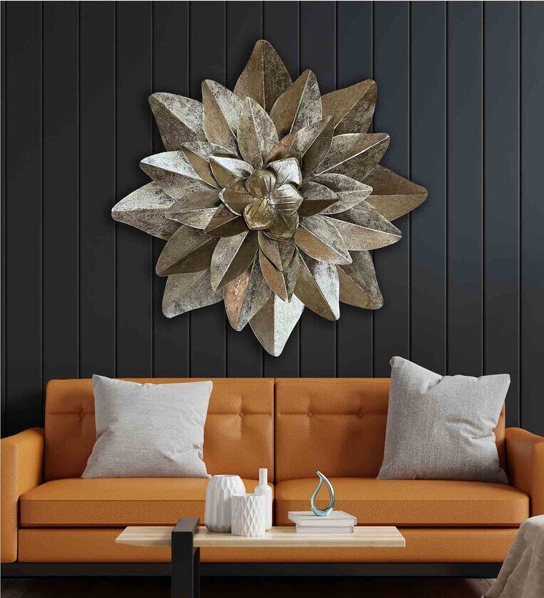 Large Gold Star Flower Gold Metal Wall Art