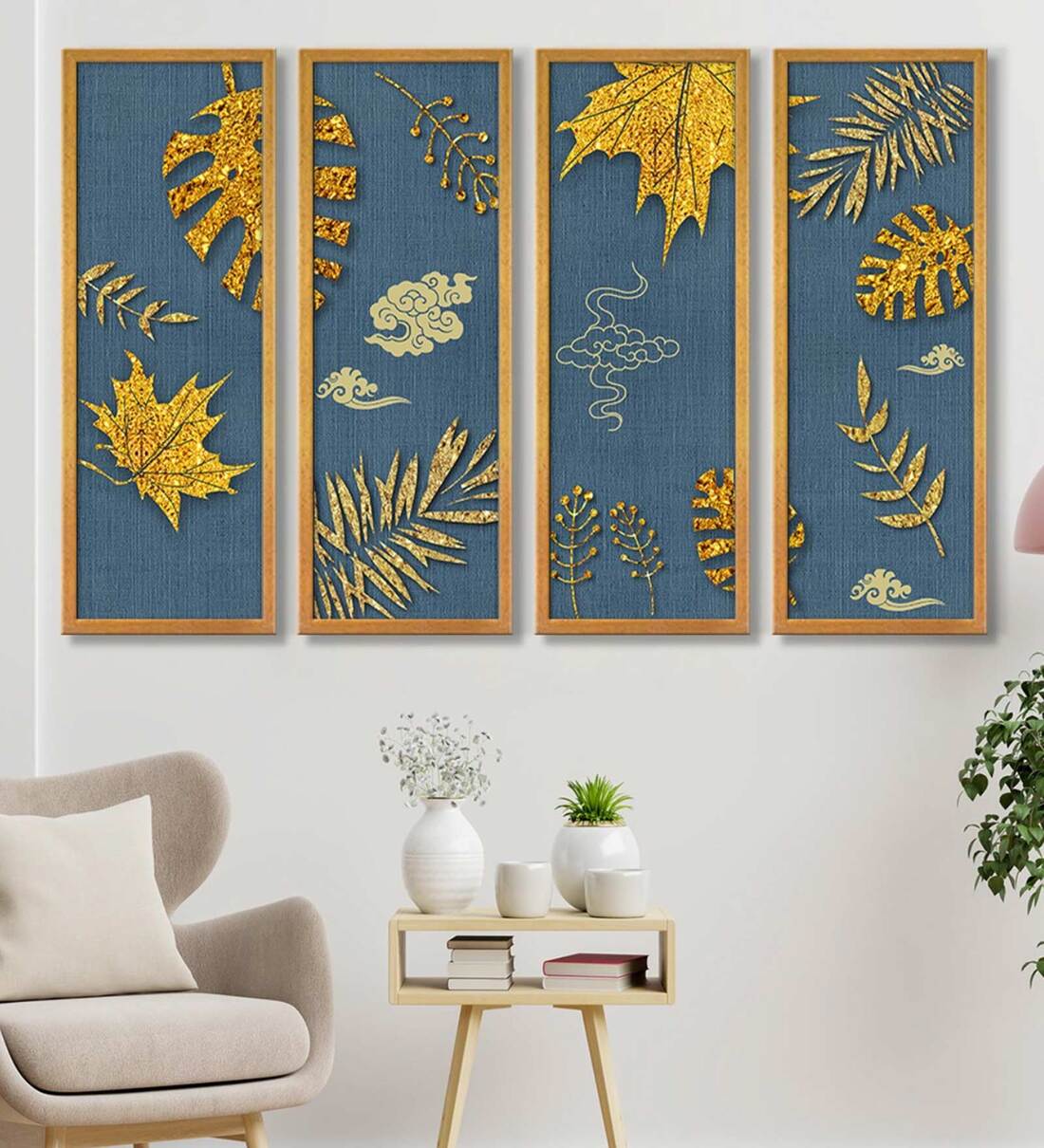 Leaves Multicolor Canvas Framed Landscape Art Panel Set of 4