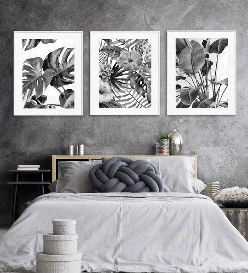 Leaves White Paper Framed Floral Art Print Set of 3