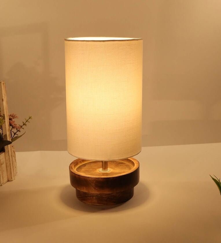 Lecce White Cotton Shade Table Lamp With Wood Base
