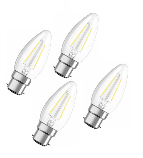 Origin Glass LED Filament Bulb-3W-Candle Shape-B22 Base (Cool White) - Pack of 4