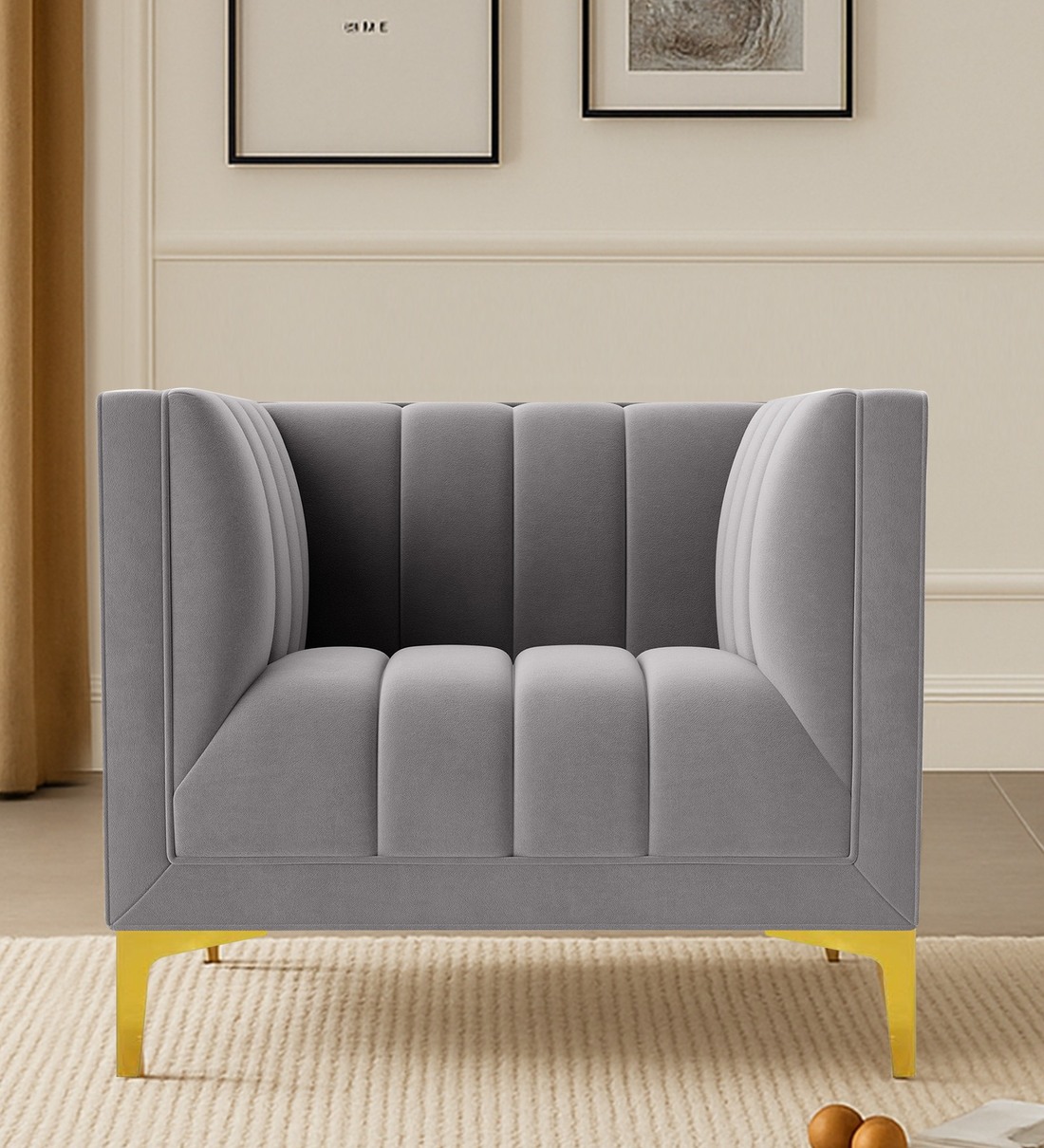 Lem Velvet 1 Seater Sofa in Grey Colour