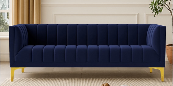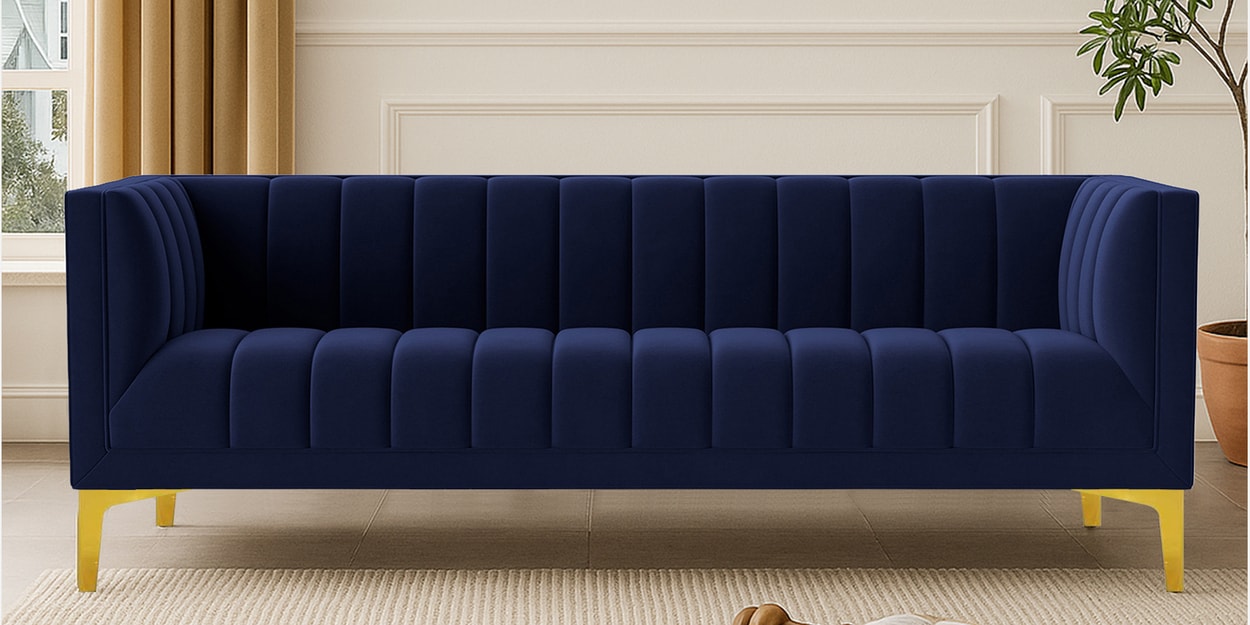 Lem Velvet 3 Seater Sofa in Navy Blue Colour
