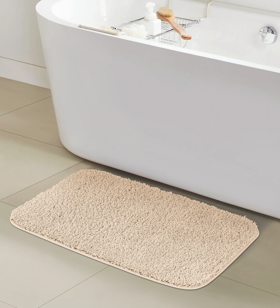 Light Beige Absorbent and Quick-Dry Polyester Bath Mats 30x45 cm