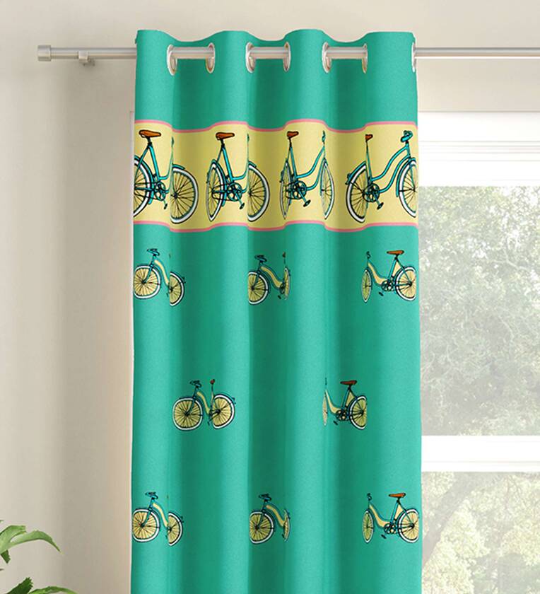 Light Green Abstract Polyester 5 Ft Light Filtering Eyelet Window Curtain