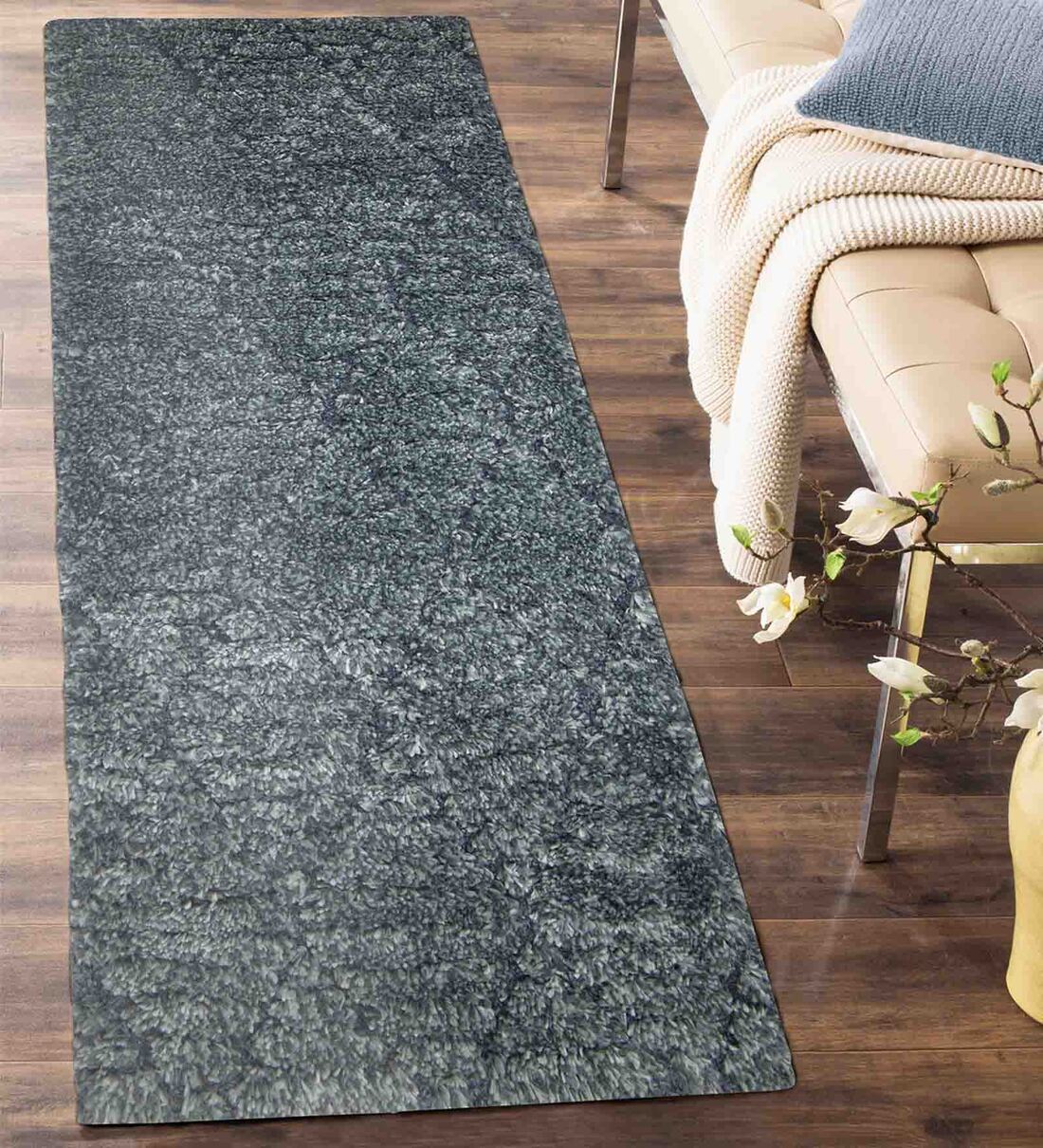 Light Grey Geometric Polyester 59x32 Inches Machine Made Floor Runner