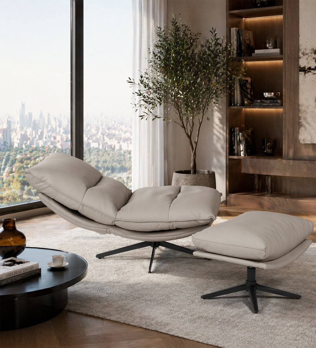 Lily Leatherette Lounge Chair in Beige Colour With Foot Stool And Adjustable gear Back