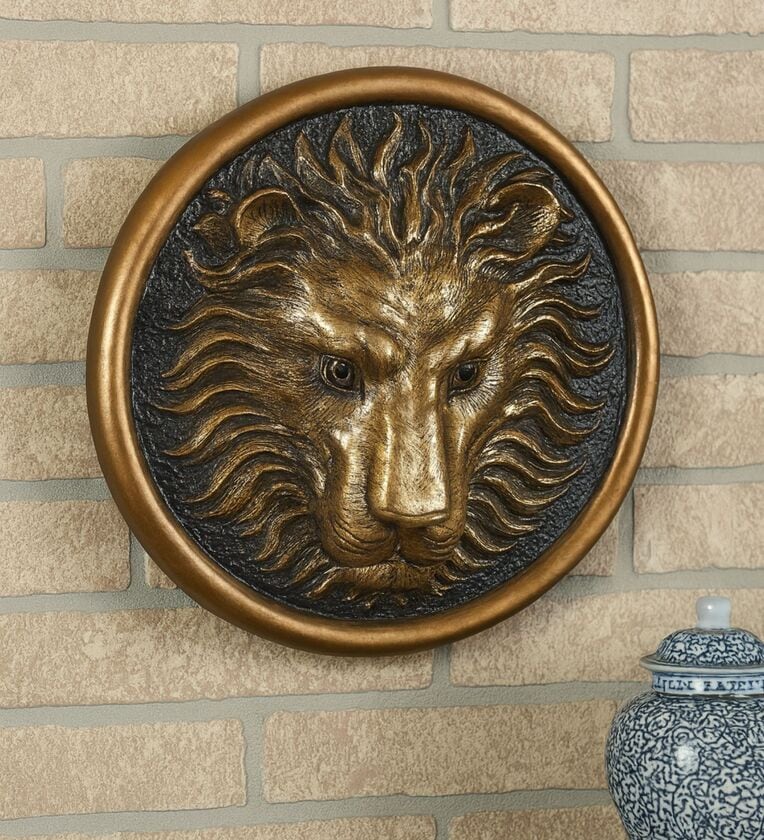 Lion Head Wall Art Showpieces (Black & Gold, 26.7cm)