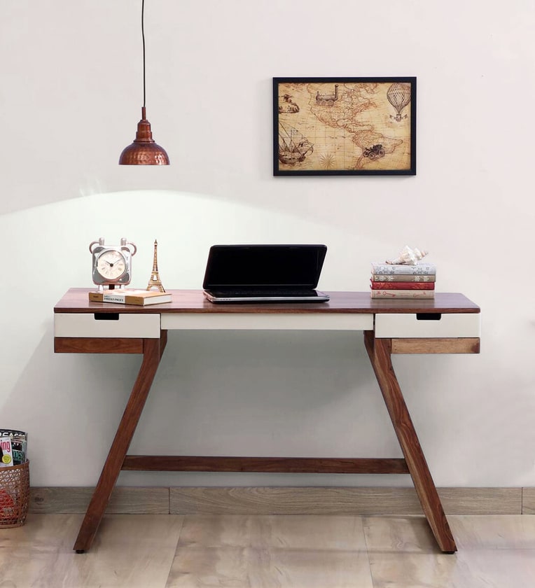 Lisbon Sheesham Wood Writing Table In White On Scratch Resistant Rustic Teak Finish