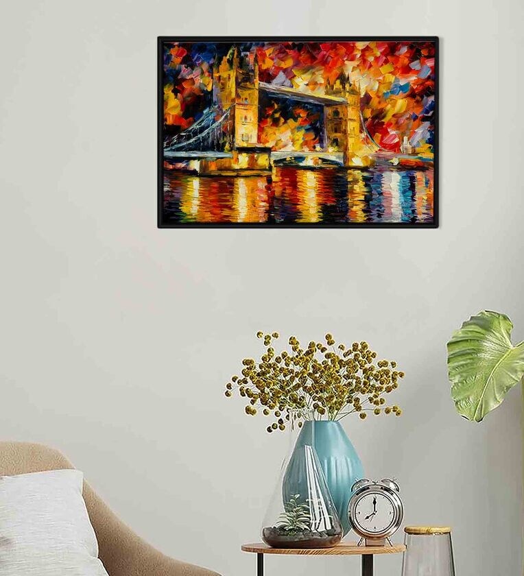 London Bridge Multicolour Synthetic Wood Framed Canvas Wall Painting
