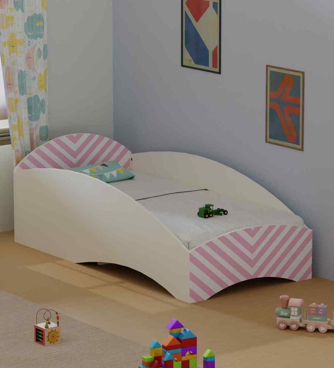 STYLISH & FUNCTIONAL KIDS BED: Modern toddlers bed (5x2.5ft Mattress size) with a sleek, colorful design, built-in side railings for the safety of the lil' one. Perfect children s bed that can be placed next to the Parent's bed & ideal for reading, relaxing, and room d cor upgrades. Please note: Mattress not included in the bed. SAFE FOR CHILDREN NO PAINT, NO CHEMICALS: Made with non-toxic materials and zero paint. Features scratch-resistant PVC lamination, rounded corners, and no sharp edges, making it a child-safe bed for toddlers to teens. DURABLE ENGINEERED WOOD CONSTRUCTION: Crafted from high-strength HDF wood with matte laminate finish and weight bearing capacity of 110Kgs on bed. Sturdy ISO certified joinery prevents loosening over time. Includes floor-protective plastic buffers for easy movement and scratch-free flooring. Designed for long-lasting durability and high load-bearing capacity. DIY ASSEMBLY WITH SUPPORT: Comes with step-by-step assembly manual and video guide. Need assistance? You can contact Boingg! Service Support on 011-41170803
