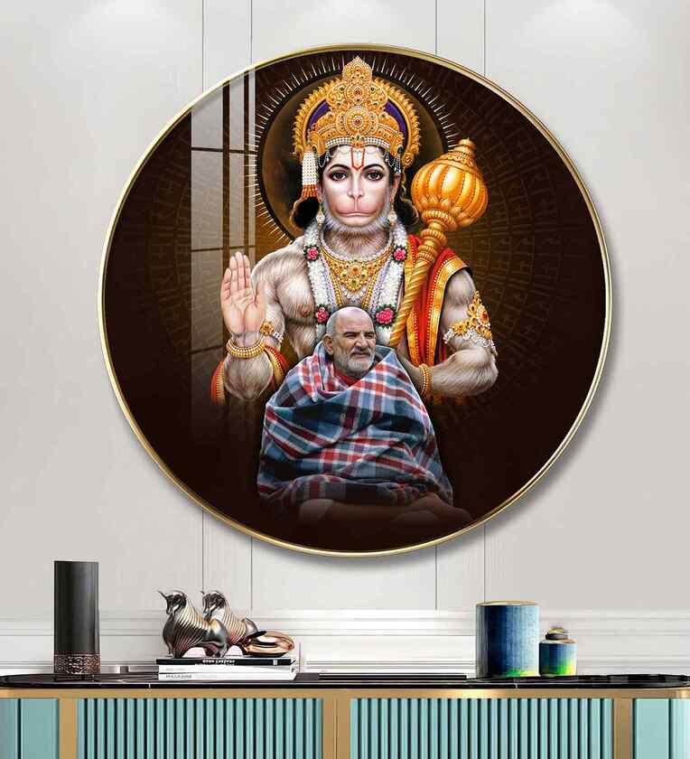 Lord Hanuman Ji And Neem Karoli Baba Acrylic Round Wall Art
