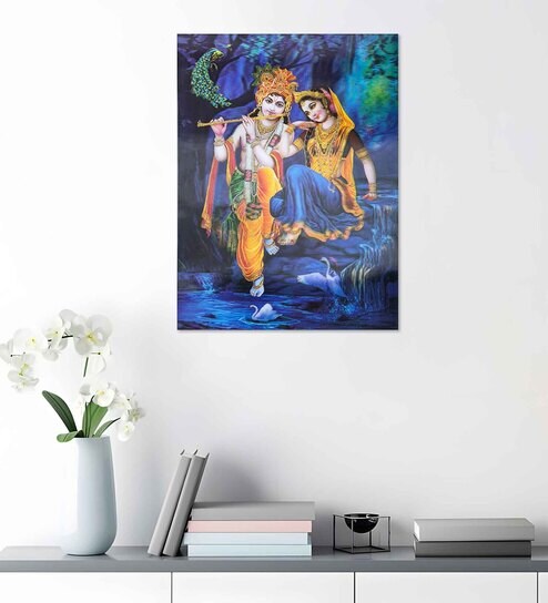 Lord Radha Krishna with Swan Painting, Religious Wall Art Print 5D/3D Poster for Home