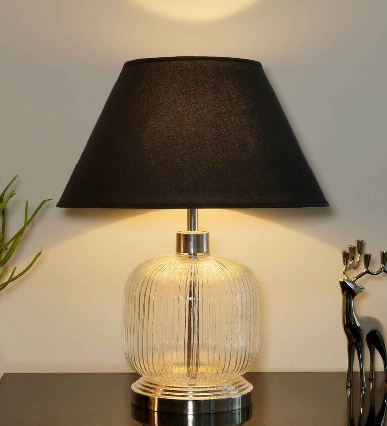 Louise Black Cotton Shade Night Lamp With Metal & Glass Base