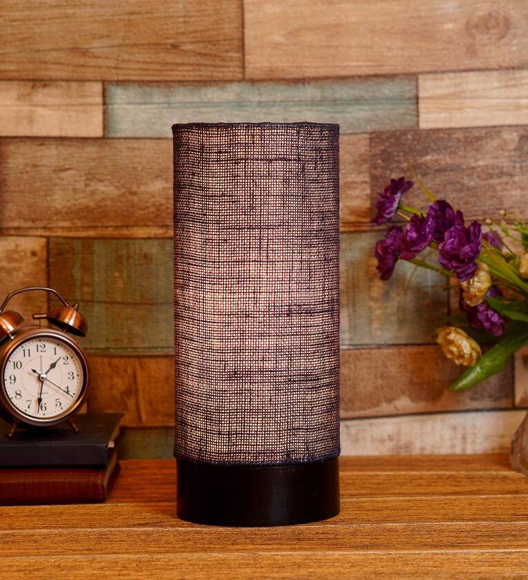Louise Blue Natural Fiber Shade Table Lamp With Wood Base