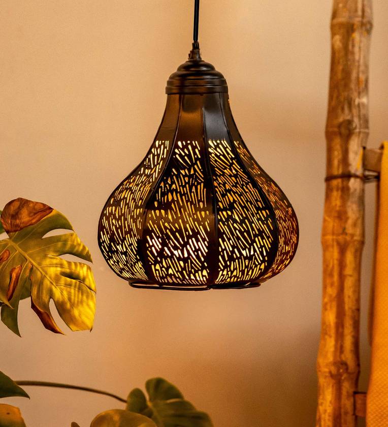 Lourdes Black and Gold Iron Single Hanging Light