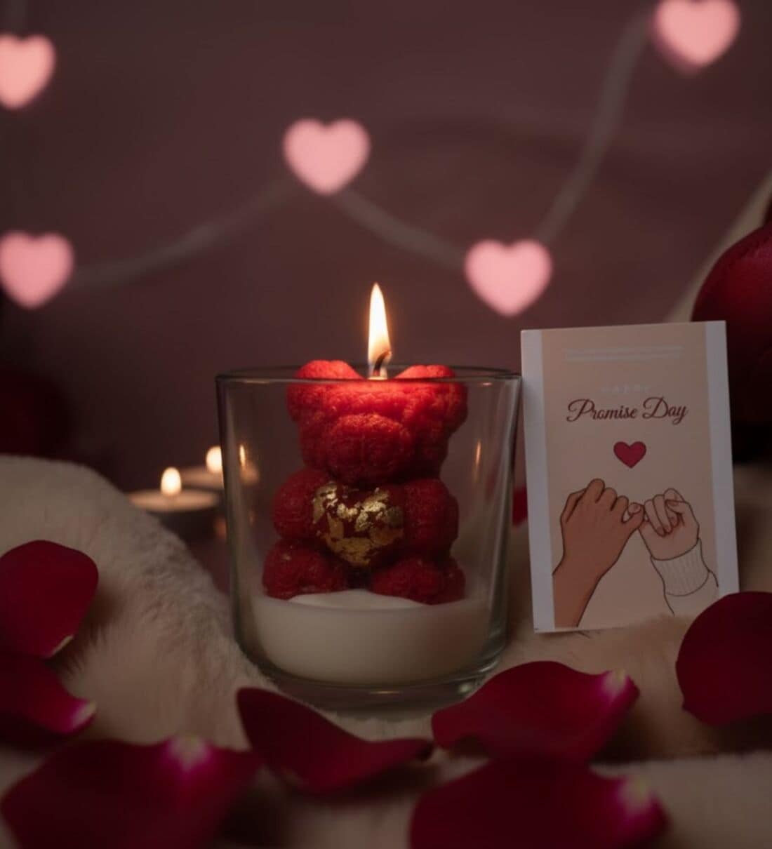 This adorable red teddy candle captures playful romance with its soft glow and heartwarming design ideal for expressing affection.