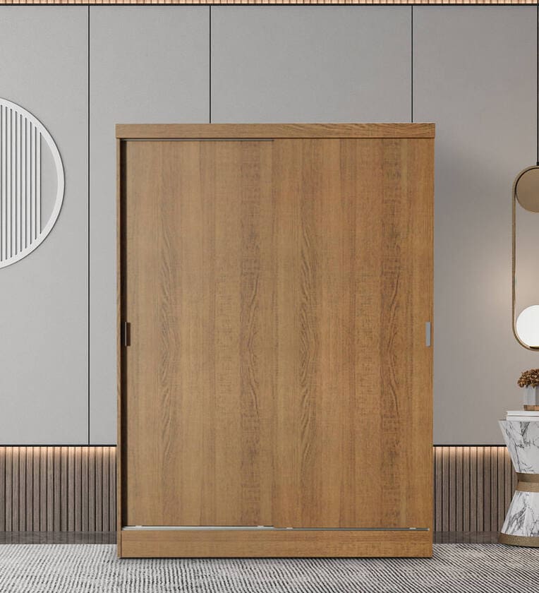 The Luke Wardrobe offers a versatile and compact storage solution for your home. Designed to be a jack-of-all-trades, it seamlessly fits into a single bedroom or serves various storage needs across different rooms. The internal layout is thoughtfully organized, featuring two smooth-operating drawers, one of which is lockable for secure storage. Its wooden sliding doors provide effortless access without impeding room flow, and the slightly angled aluminum handles ensure ease of opening. Available in white and Rustic wood tones, the wardrobe measures 183cm in height, 120cm in width, and 53cm in depth, catering to a range of spatial requirements. The wardrobe comes equipped with two (2) hanging rods, two (2) drawers, one (1) lockable drawer for added security, three (3) shelves, and two (2) wooden sliding doors, making it an ideal choice for those seeking a stylish, durable, and practical storage option.
