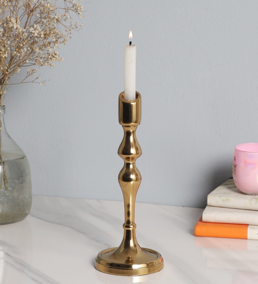 Compact yet striking, the Lumora Gold Small Candleholder brings a touch of opulence to intimate settings. Ideal for side tables, consoles, or clustered displays.