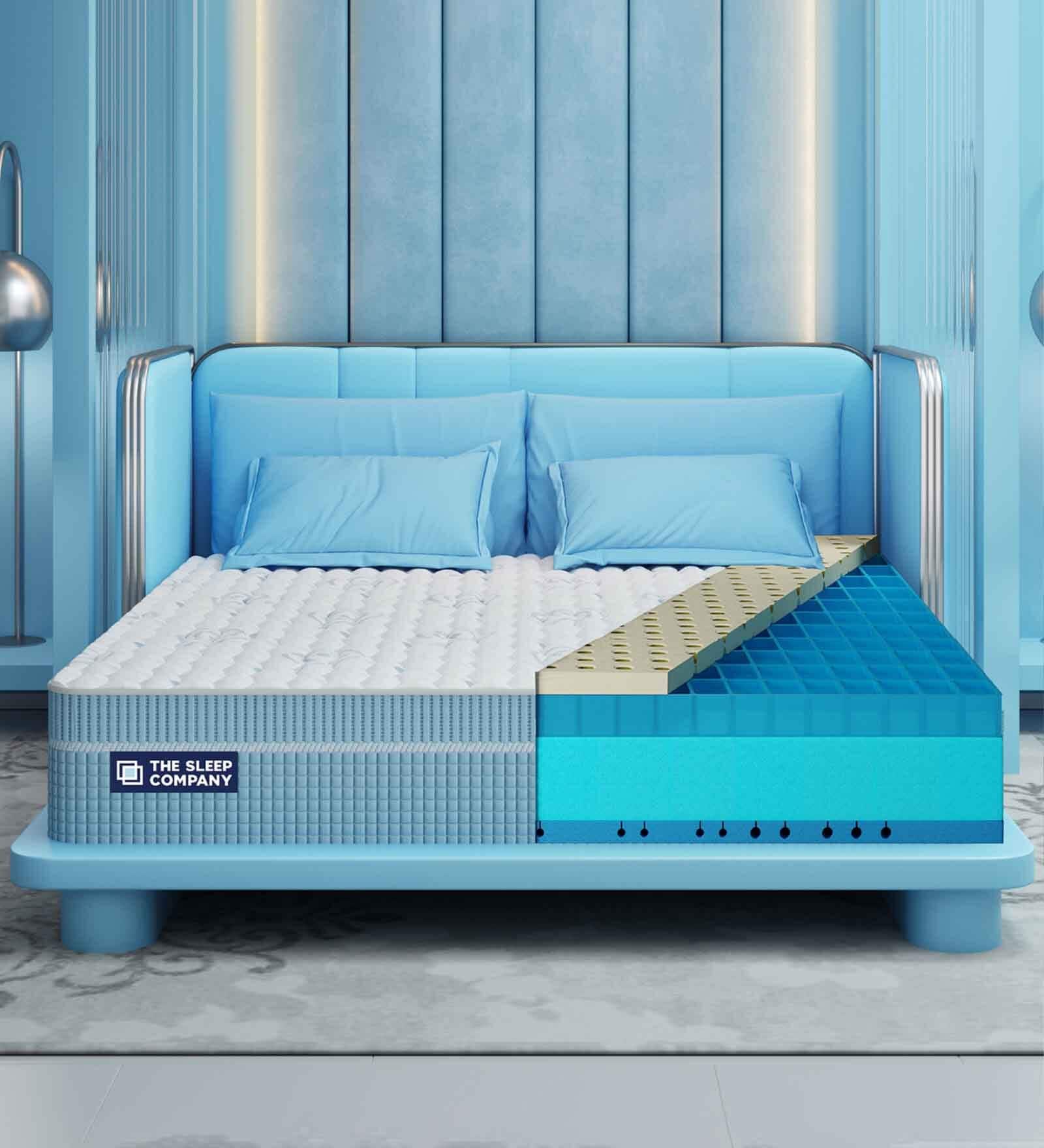 The Sleep Company was created with a mission to upgrade the sleep quality for every individual. Our mattresses are the outcome of years of research and each layer has been crafted with Sleep Science at its foundation, so as to ensure your sleep is happy & healthy.After millions of trials was born SmartGRID. It is a comfort layer made from hyper elastic polymer which is designed in the form of a grid structure which allows the walls of the grid to buckle down on body curvatures (like the hips, shoulders given the smaller surface area). Hence, it provides mind-blowing comfort while the walls will withstand the pressure under bigger body parts like the spine. So you sleep all night every night. So, its time to start enjoying the kind of sleep you truly deserve the best sleep of your life (thanks to SCIENCE!), and get your 100 nights trial now, on our amazing SmartGRID mattress.