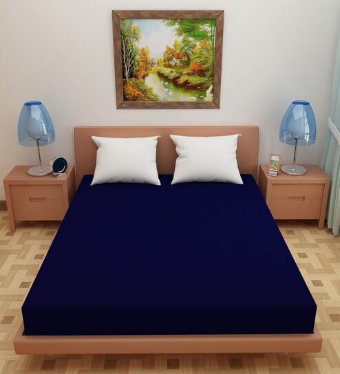 Luxury Waterproof Fitted Terry Cotton Queen Size (72x60) Mattress Protector in Blue Colour