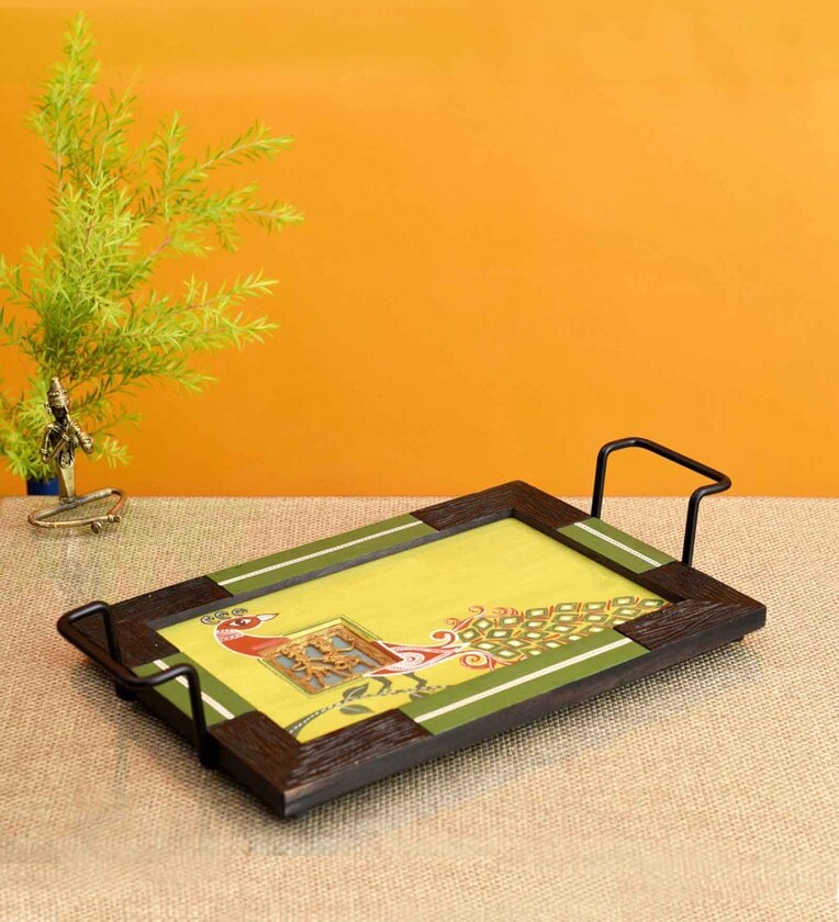 Madhubani Art Natural Wood (Set of 2) Serving Trays