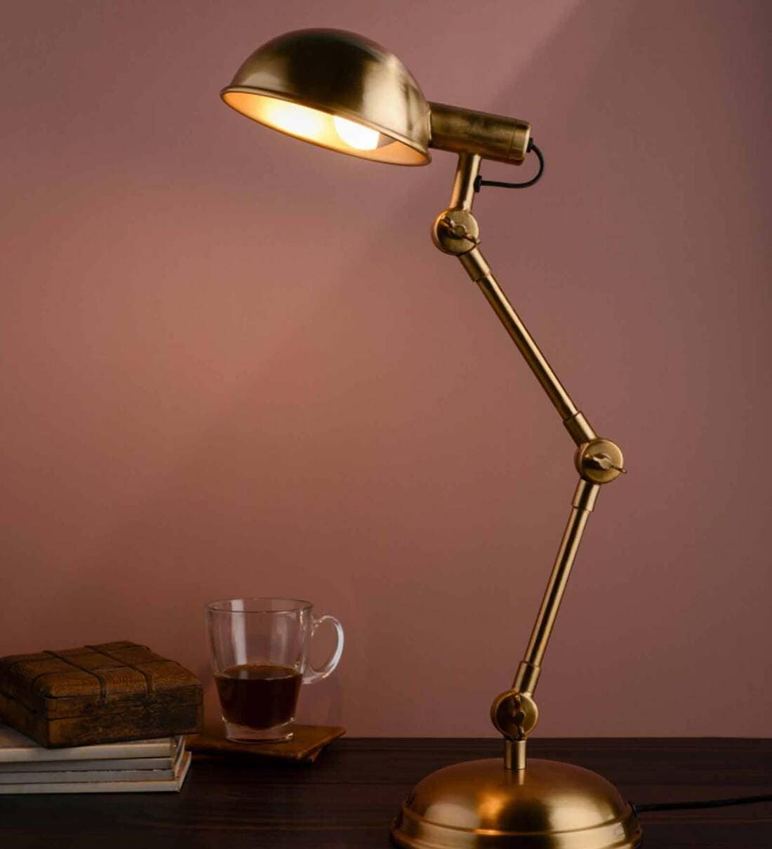 Malan Antique Gold Adjustable Study Lamp With Iron & Brass Base