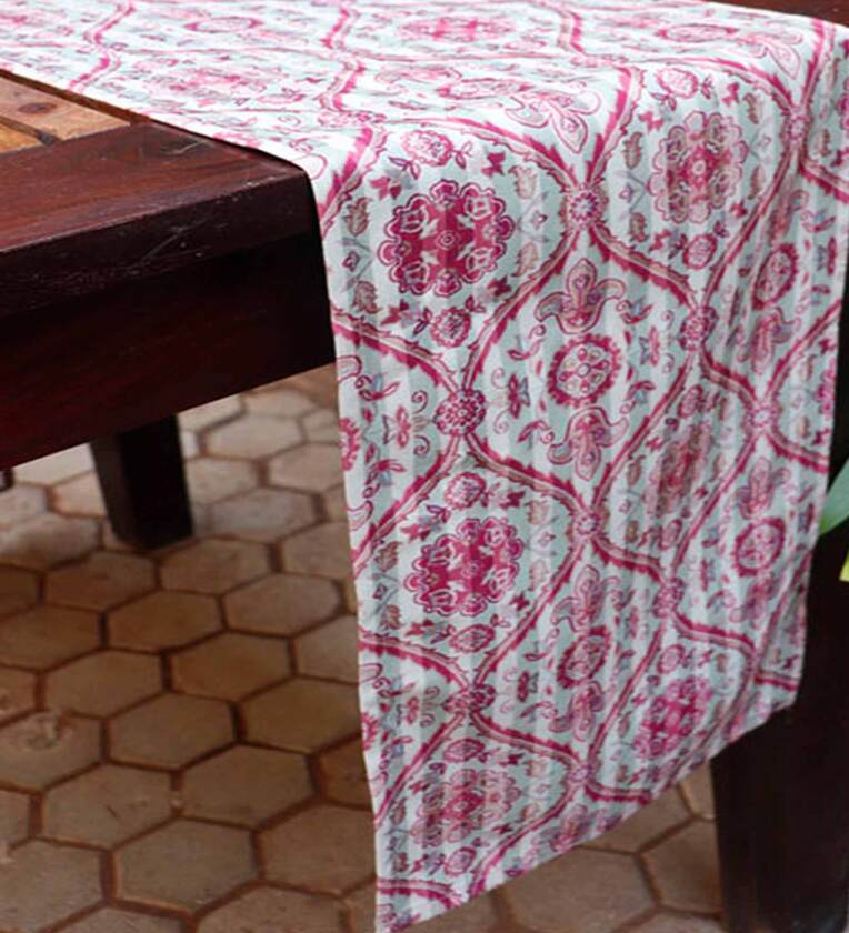 Dress your dining table in shades of pistachio green striper with a floral damask print table runner. Beautifully embroidreed in silk threads to accentaute the floral motifs. The intricate patterns and the deep rich colors make it aesthically exclusive and appealing. The vintage look of the runner is loved and preferred by all. Stitched well keeping in mind the best quality and long lasting duarablity. A table runner adds color, texture, and interest to your table decor. It also enhances your tablescape in subtle or dramatic ways depending on the color and texture you choose.