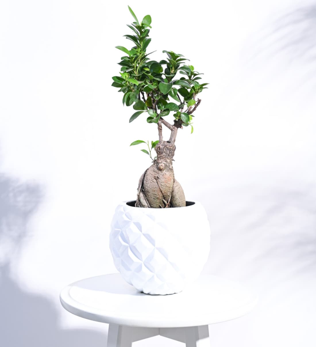 Celebrating retro in every form, this disco ball planter is a call to the fun times. Our Diamas Ivory Planter is made of lightweight and durable fibre material making it perfect for indoor gardens. The surface is textured to give a premium 3 dimensional feel of depth to the planter. The planter is easy to clean and move around and the circular shape accentuates all foliage shapes and sizes. It can also be easily fitted into a macrame planter and turned into a hanging planter. The white colour adds the perfect amount of minimalist Scandinavian touch to your home garden.