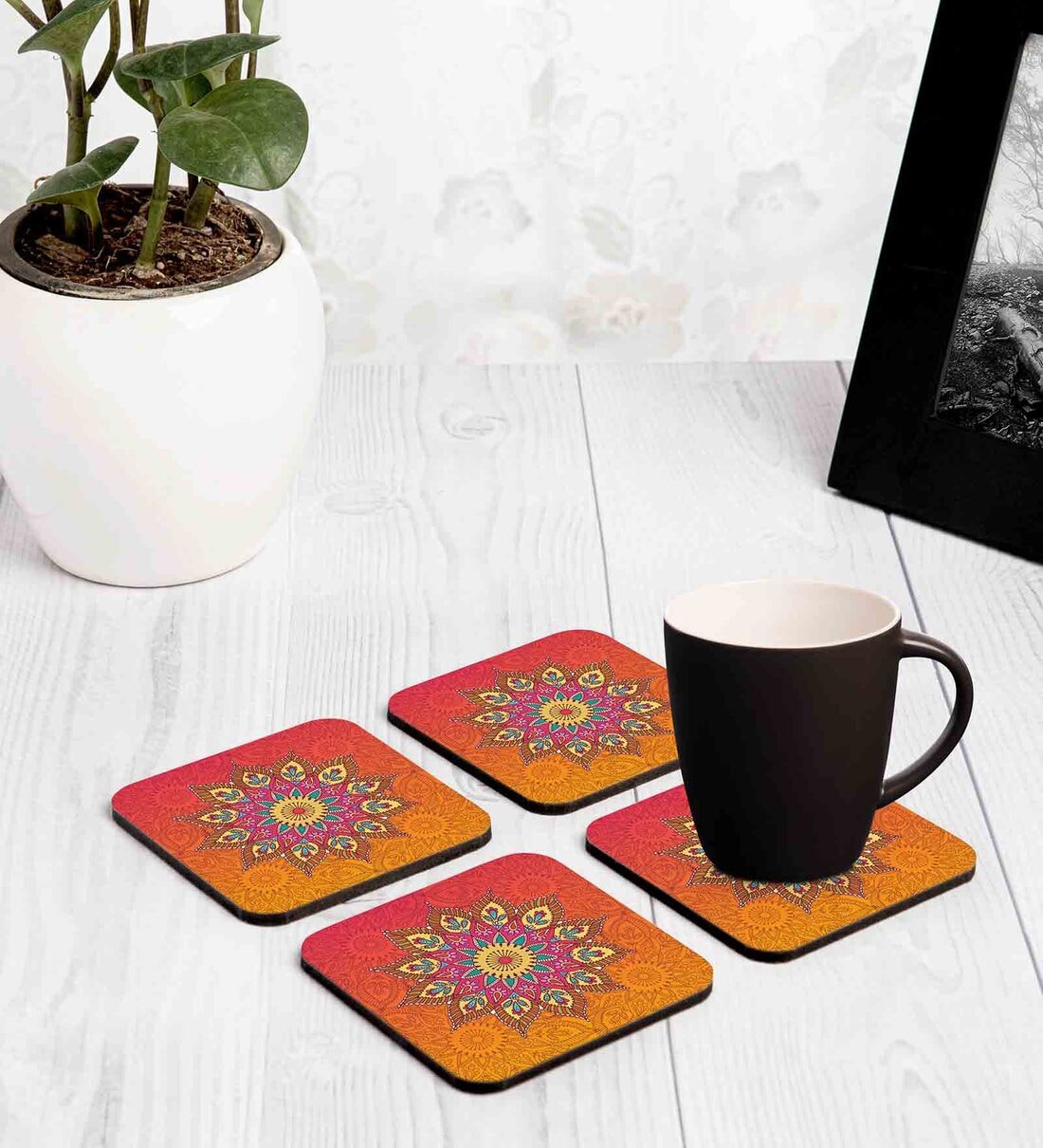 WOODEN Coaster set with digital print. FELT BASE at the bottom of the Coasters, to protect your furniture and prevents unwanted spills and messes. FITS MOST KINDS: bourbon, highball, lowball, whiskey glasses, coffee mugs, tumblers, flasks, mason jars, and large fountain drinks. PREVENT CONDENSATION from leaving any stains or water marks on your countertop, bar, or tabletop surface. SIZE: Square Coaster 3.75 x 3.75 (L x W) EXACT Measurements: Coaster 9.5 X 9.5 x 0.4 cms (L x W x H). CAN HOLD: 1 Glass or 1 Cup. GREAT For Serving Drinks. PROTECTION for your Table Top. VERSATILE and beautiful design makes it perfect for end tables, nightstands, counter tops, vanities and desks throughout your home; Use in kitchen, living room, family room, office, craft room, bedrooms and more. EASY TO CLEAN: Wipe using a dry or damp soft cloth. Do not wash under tap or put in dishwasher. DO NOT USE it in a Microwave.