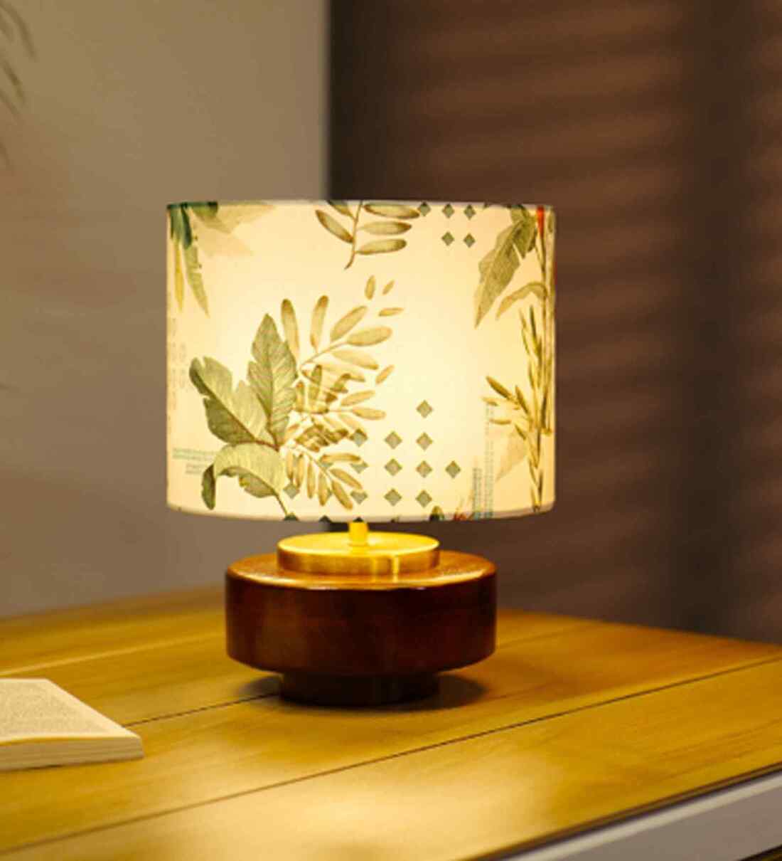 Mango Wood Turtle Base Table Lamps With Green Tropical Mango Silk Lampshade 14"