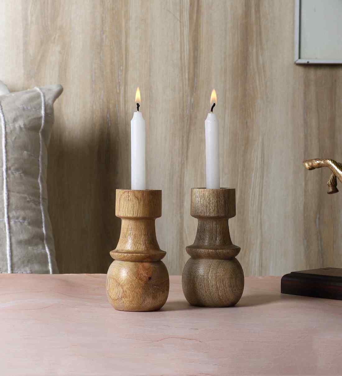 MangwoWood Round Base Candle Stand Set of 2 is Perfect for your Home & Office and can be gifted to your loved ones