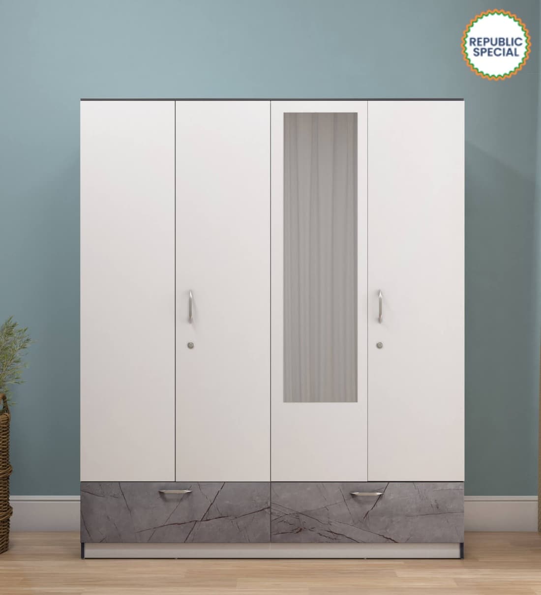 Marbito 4 Door Wardrobe in White Finish with Mirror