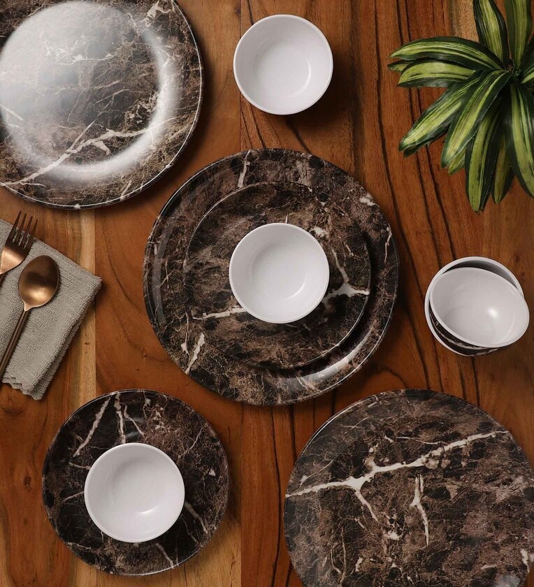 Marble Print Brown Melamine 18 Pcs Dinner Set
