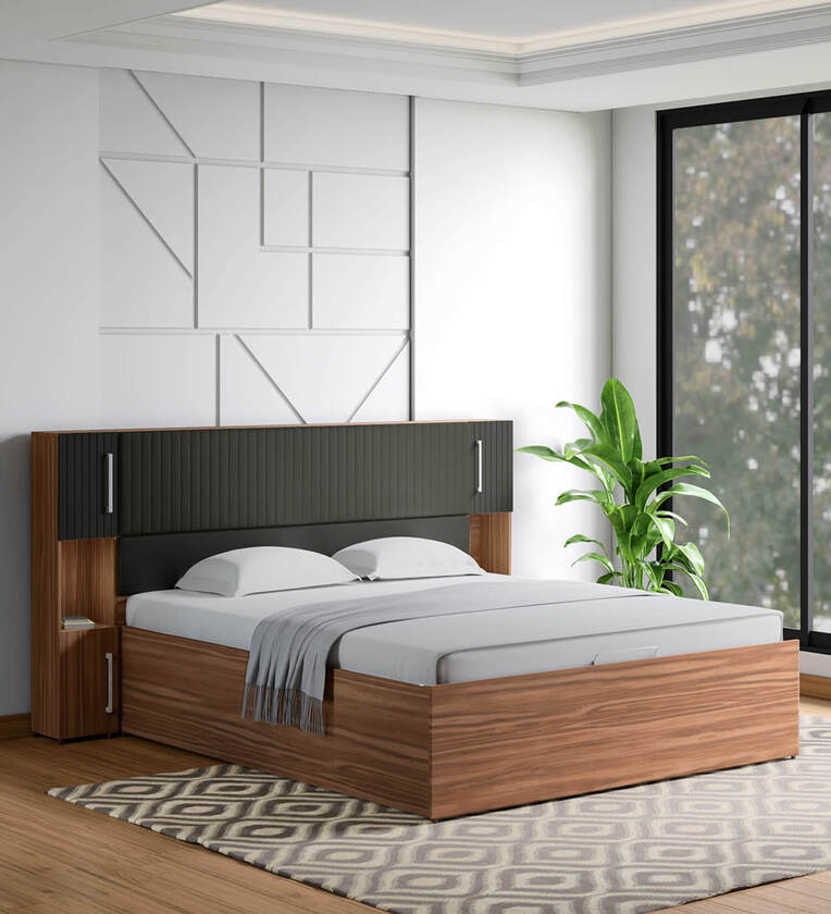 Marcel King Size Bed in Brown Finish With Hydraulic Storage