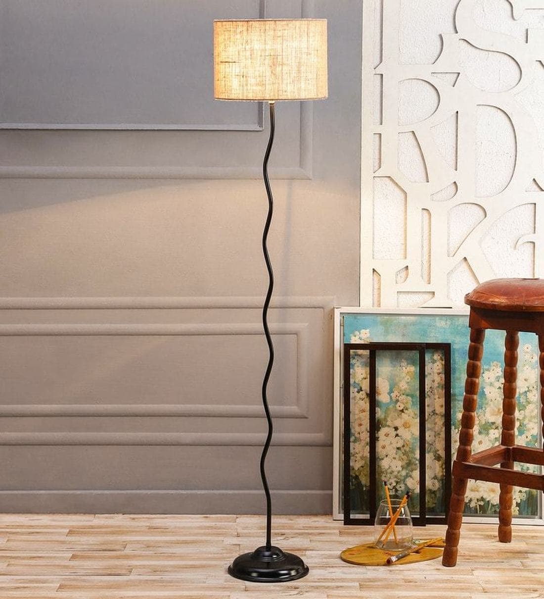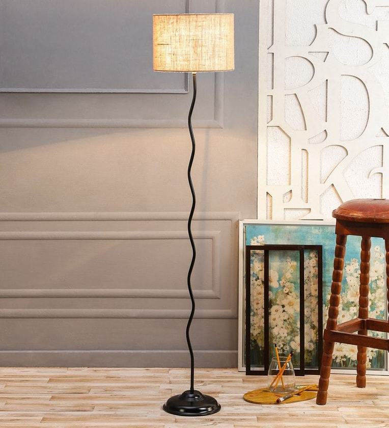 Margie Beige Fabric Shade Club Floor Lamp With Metal Base