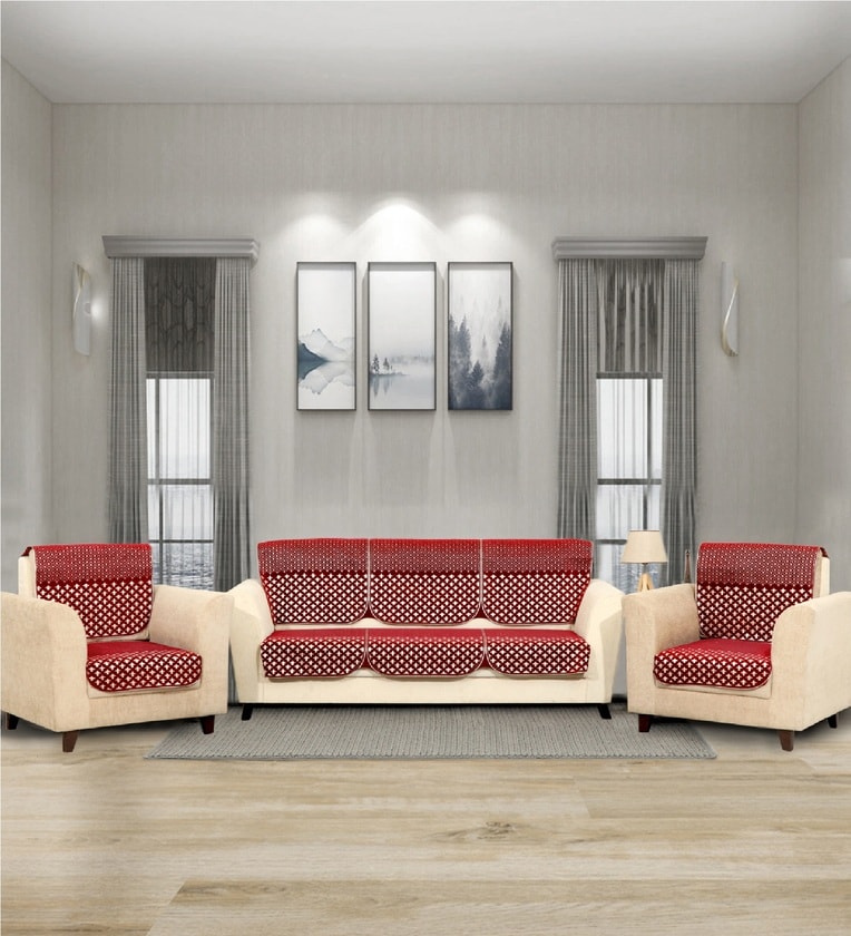 Maroon 5 Seater Abstract 10Pcs Sofa Covers
