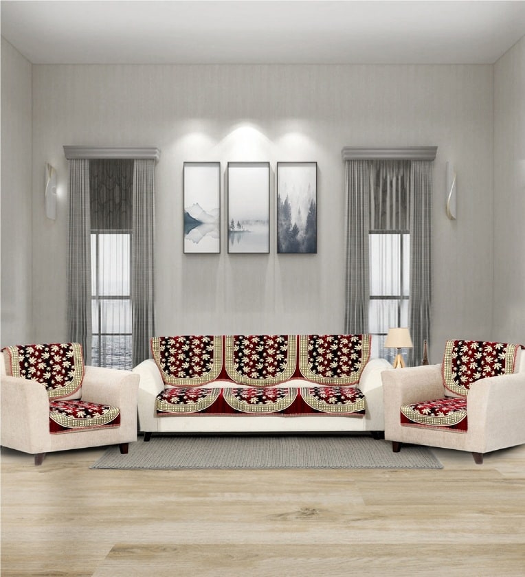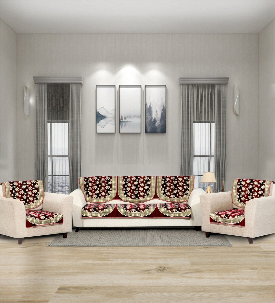 Maroon 5 Seater Polka Dot 10Pcs Sofa Covers
