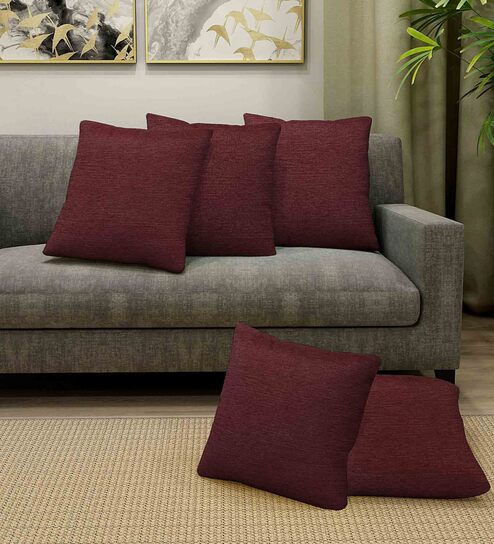 Maroon Cotton Solid 14 x 14 inch Set of 5 Cushion Covers
