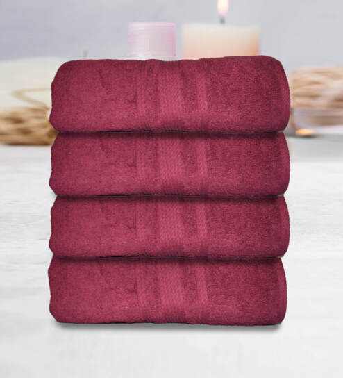 Maroon Cotton Solid 500 GSM Bath Towels (Set of 4)