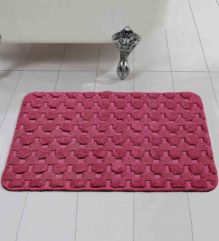 Maroon Geometric Cotton 17x25 Inches AntiSkid Bath Mat