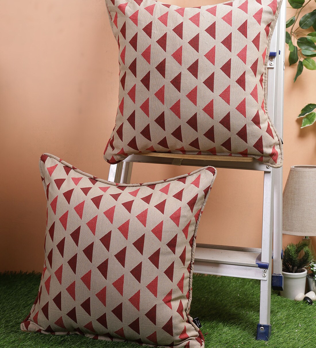 Maroon Geometric Cotton 18 x 18 Inches Cushion Covers (Set of 2)