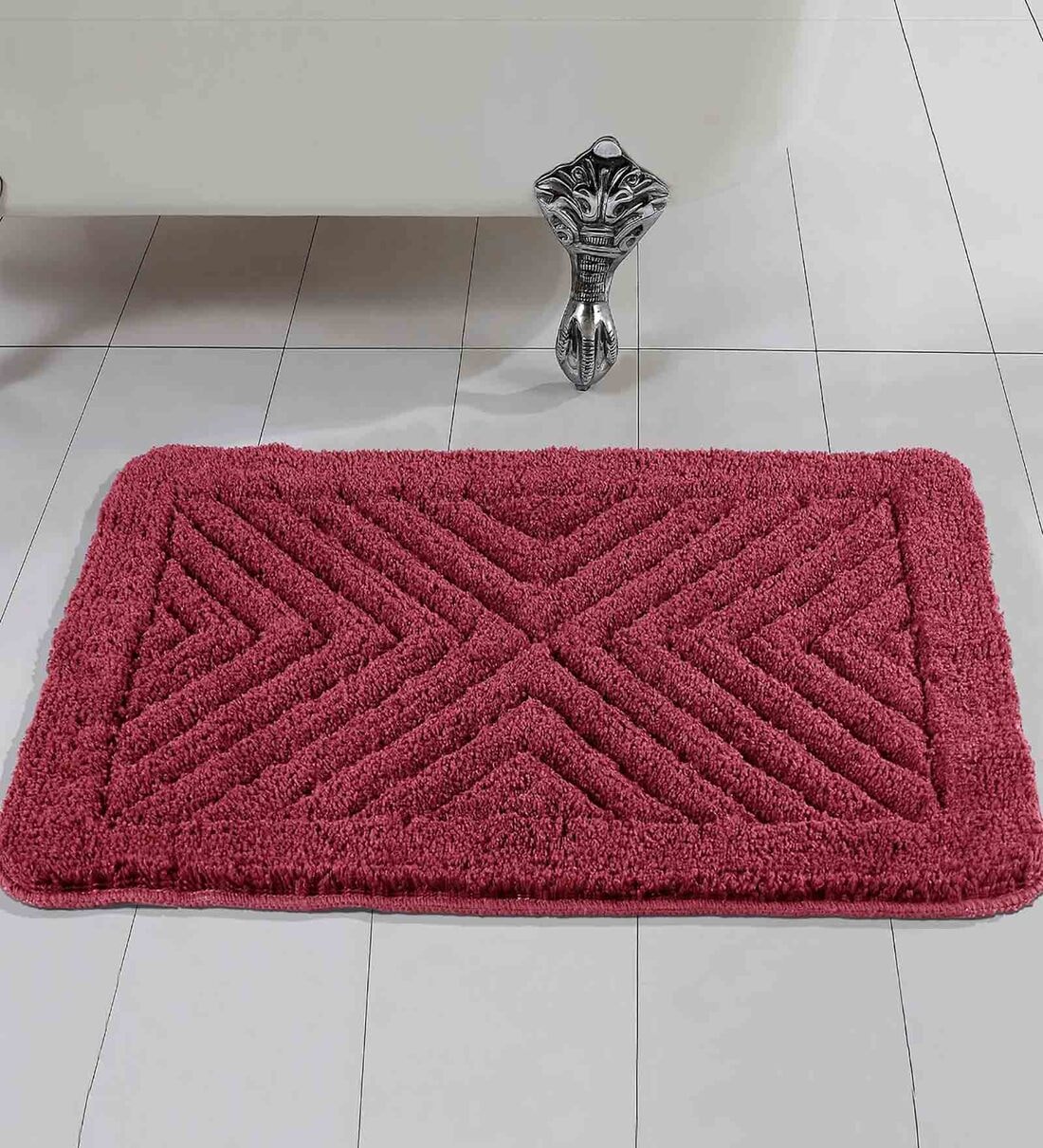 Maroon Geometric Microfibre 19x27 Inches AntiSkid Bath Mat